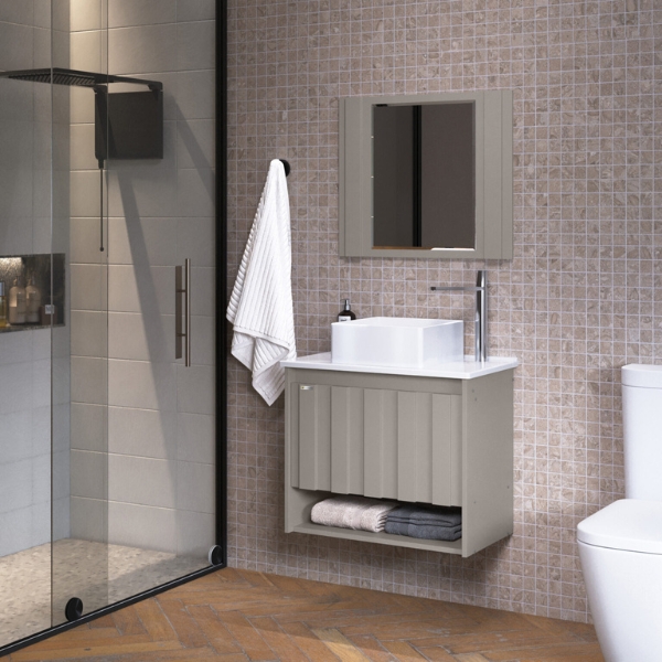 Estrutura reforçada de madeira pinus de reflorestamento próprio tratada em estufas com alta temperatura. Frente de portas e gavetas em MDP BP – 15mm madeirado com lâmina melamínico, proporcionando maior resistência luz, à umidade e fácil limpeza.
